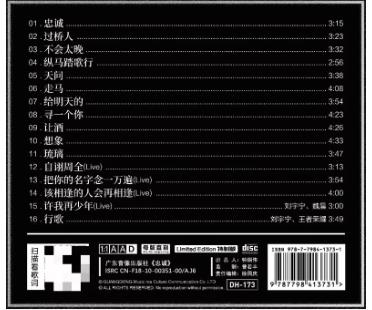 全新未拆封!廣東音像出版社限量版,曲目齊全,收錄《忠誠》《過橋人》《不會太晚》《縱馬踏歌行》《天問》《走馬》《給明天的》《尋一個你》《讓酒》《想象》《琉璃》《自謝周全(Live)》《把你的名字念一萬遍(Live)》《該相逢的人會再相逢(Live)》《許我再少年(Live)》《行歌》等16首,音質無損,外盒包裝完整,碟片幹凈,收藏聽歌都合適。